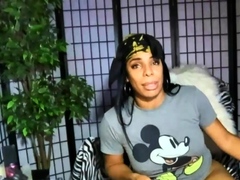 BBW trans ebony toys asshole and jerks cock