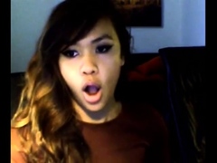 Asian Sissy Crossdresser uses Wine Bottle Dildo