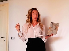 SPH femdom babe jerks small cock guy
