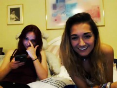Saucy blonde and brunette BFFs in sexy undies flash their s